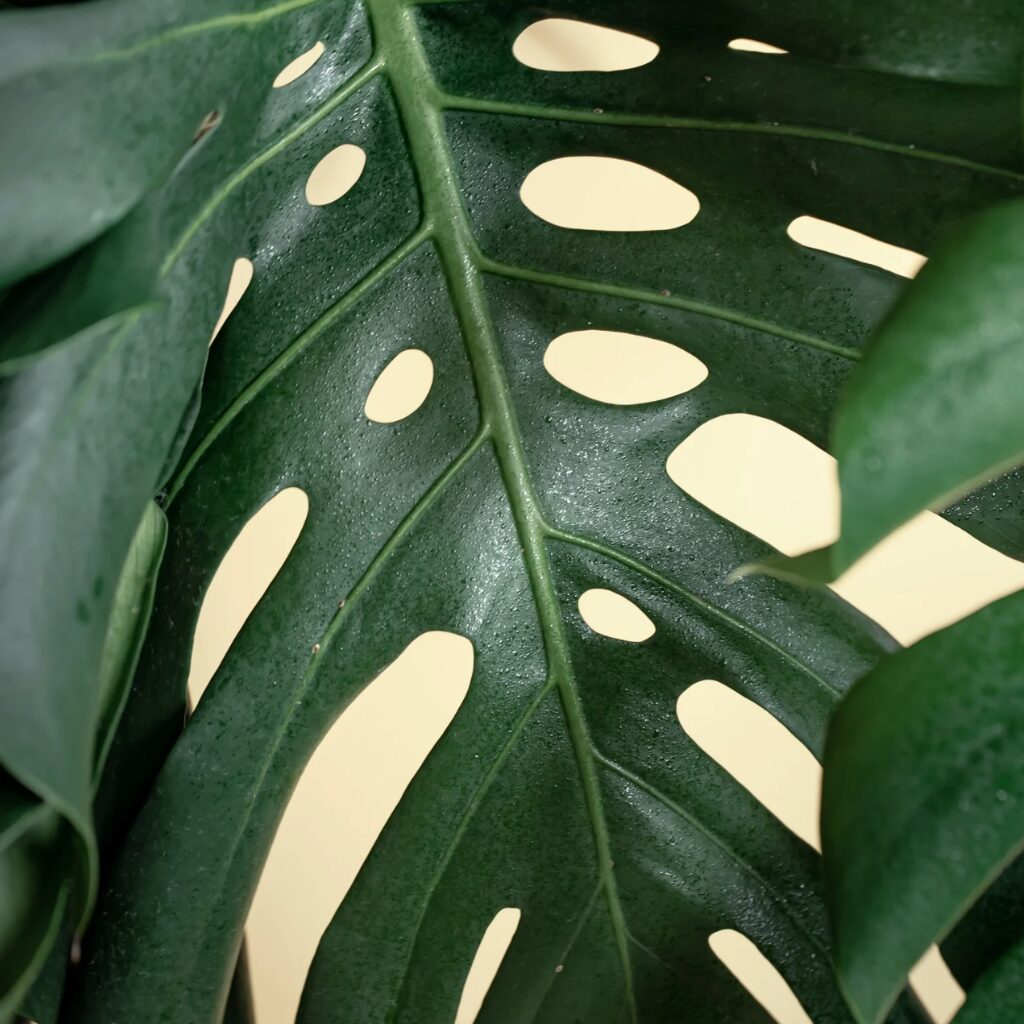 - Monstera in idrocoltura – Foglie ampie e iconiche: aiuta a mitigare eventuali riverberi soprattutto negli open space e a creare quinte green leggere per lounge e zone informali.