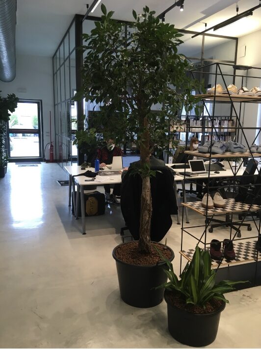 Si tratta di 27 mastelli di varie dimensioni, popolati da Areche, Strelitzie, Ficus Lyrata, Ficus AmstelKing e Zamioculcas, affiancati da una libreria verde animata da Philodendri Scandens in vasi di ceramica. Ogni elemento è stato studiato per creare un ecosistema armonico, capace di migliorare il comfort visivo e acustico e di connettere gli spazi con la natura.
